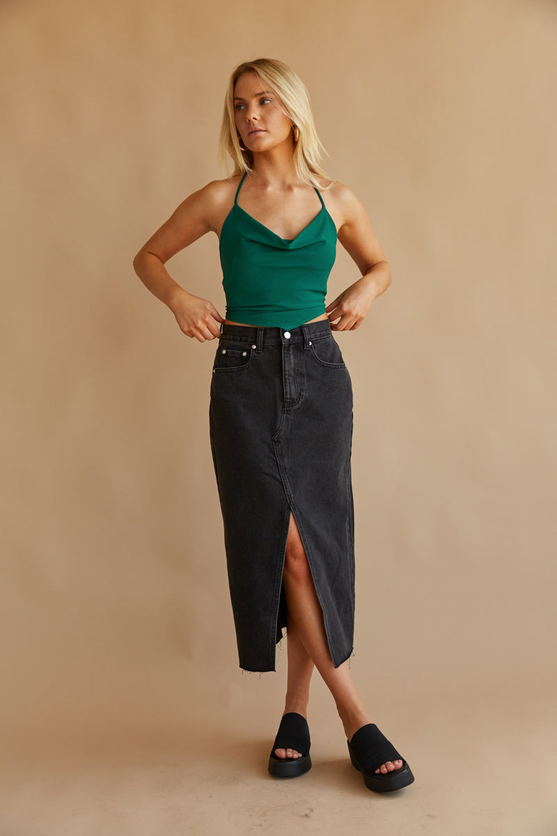 Everyone will be asking where you got the Jenna Cowl Neck Halter Top! This sexy top features a cowl halter neckline, open back with an adjustable tie, and a pointed hem. Available in green and marsala.