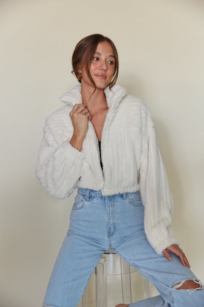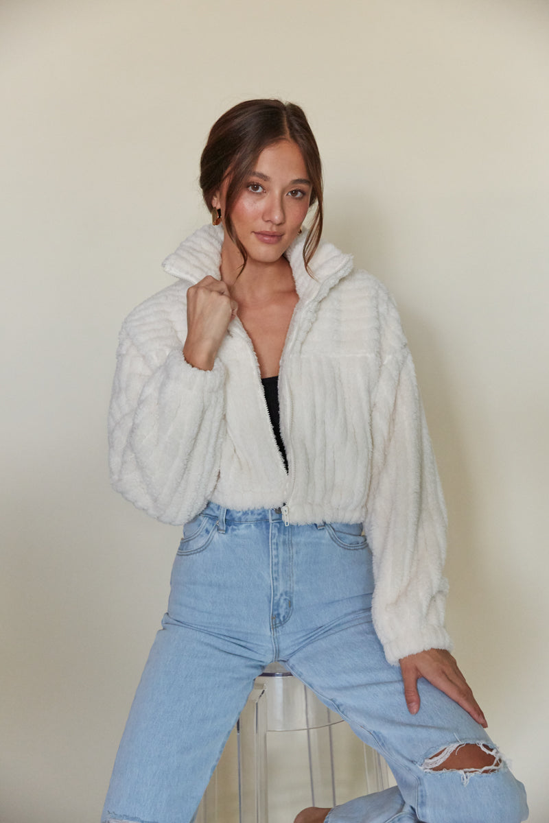 The Madison Cropped Plush Jacket is just as cute as it is cozy! This quilted lightweight jacket is made of a super soft plush material and features a collared neckline, zip front, and a cropped fit with an elastic hem. Pair with your favorite to elevate any casual fit!