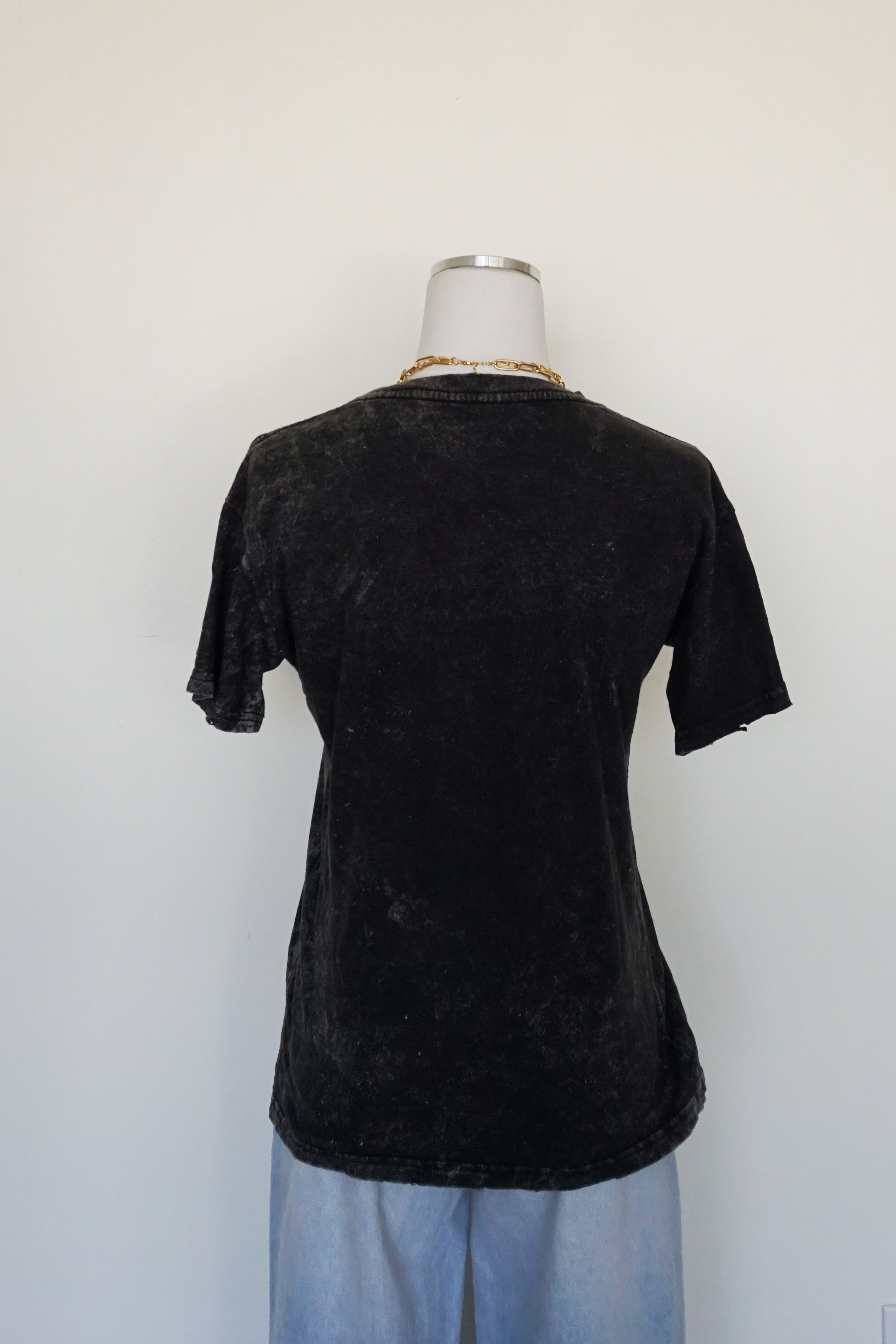 Note: This one of a kind piece has been individually hand distressed, and will have its own unique character due to the vintage nature of the shirt. We want our vintage shirts to be as unique as the babe wearing them! Before purchasing, please note that this shirt has subtle discoloration due to the vintage nature of the piece.