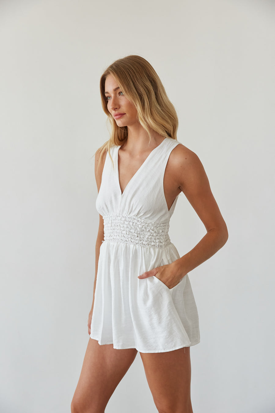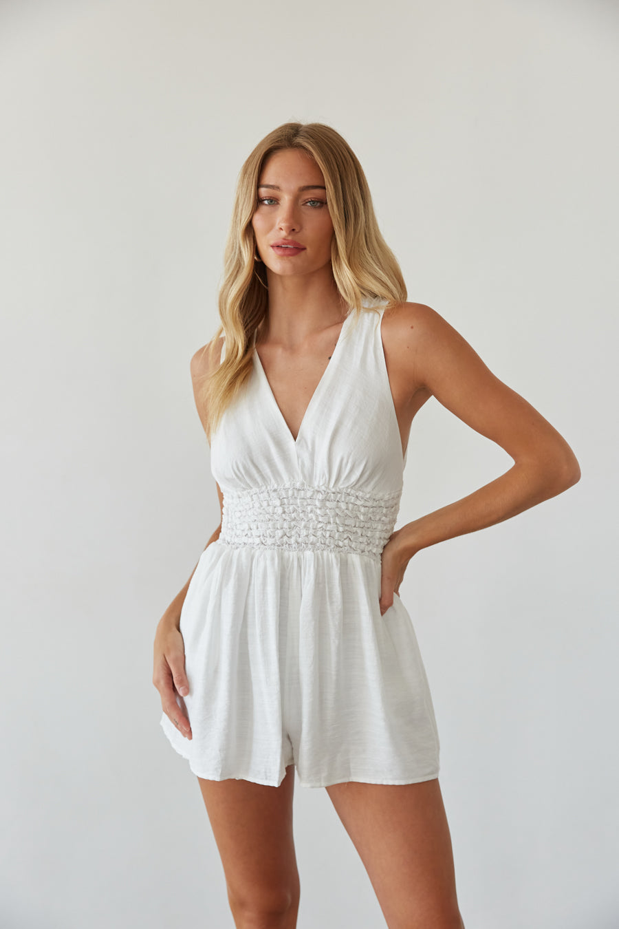 No such thing as summertime sadness in the Skyla Tie Back Romper! This adorable romper features a V-neckline, elastic smocked waist, and an open back tie detail. Finish off the look with your favorite !